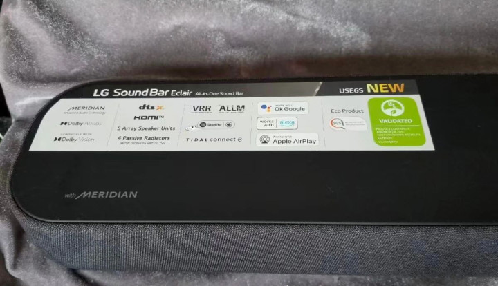 它就是LG与Meridian(英国之宝)联名推出的Sound Bar Eclari回音壁音箱,具体型号是USE6S,官方定义为“立体声霸”。