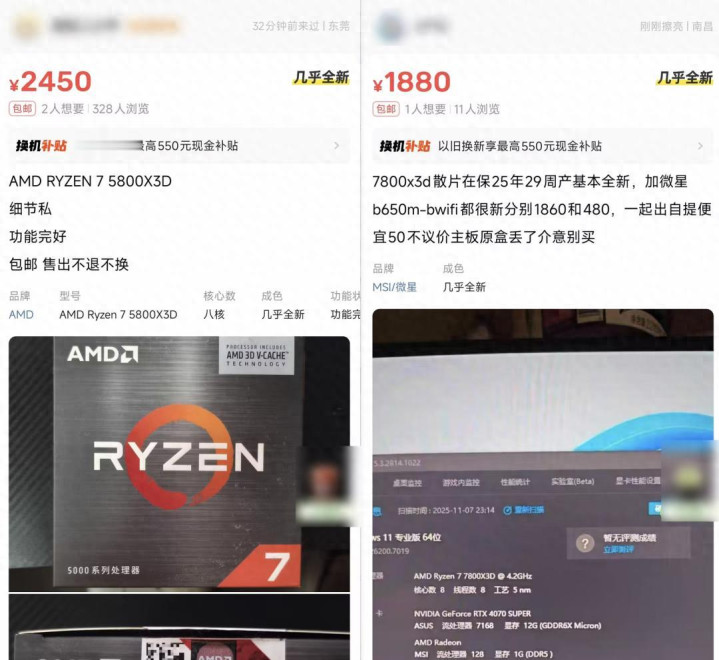 最新最离谱的一集,R7-5800X3D 的二手价格已经和 R7-7800X3D出现了倒挂。