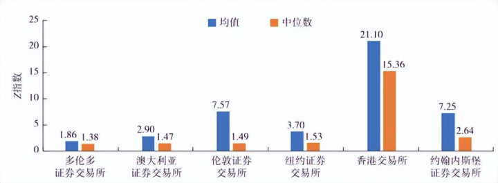 香港交易所排名前20的矿业公司的平均Z指数远远高出其他5家交易所,达到21.10,中位数也高达15.36。这表明香港交易所矿业公司的第一大股东几乎拥有绝对控股的地位,控制力极强。伦敦证券交易所和约翰内斯堡证券交易所的平均Z指数分别为7.57和7.25,说明其矿业公司的第一大股东也具有较强的控制力。相比之下,多伦多证券交易所和澳大利亚证券交易所的平均Z指数最低,分别为1.86和2.90,虽然这两个数值相对较低,但依然保持在一定水平之上,这反映出矿业行业作为一个整体,仍然呈现出高度控股的行业特征。